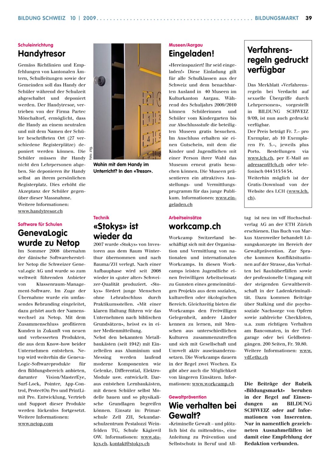 Medienberichte Medienberichte Tages-Anzeiger – „Handys werden weggesperrt“ Artikel vom 14. November 2009 Bildung Schweiz – Handytresor Bericht Artikel vom Oktober 2009 Zum Originalartikel: https://www.tagesanzeiger.ch/handys-werden-weggesperrt-487451418753